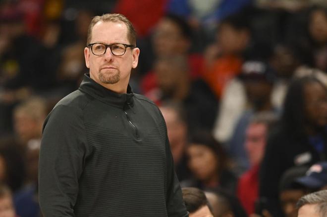 在赛季揭幕战对阵凯尔特人的比赛中,恩比德全场9投仅1中,仅得4分,正负值-16沦为球队拖累。尽管次战对阵黄蜂时,他在15分钟内高效贡献16分(三分5中3),但场均12分4篮板的数据仍与全明星级别相去甚远。更关键的是,他的出场时间被严格限制在20分钟左右,且多次因时间分配问题与主教练尼克・纳斯产生公开矛盾。